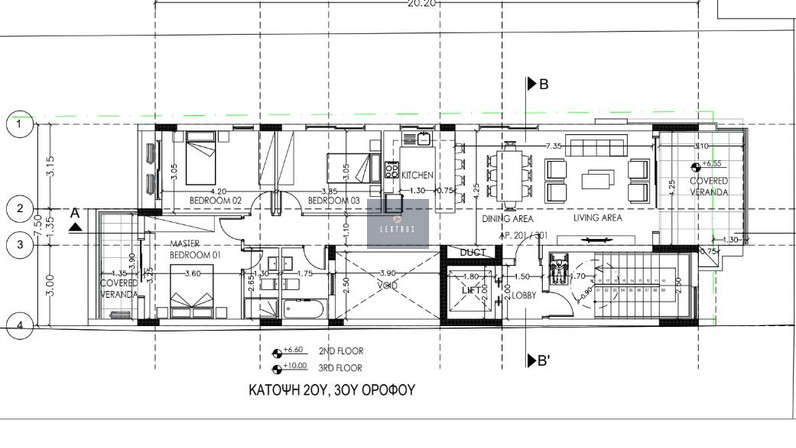 Introducing a modern off-plan apartment for sale in the sought-after area of Germasogeia. Scheduled for completion in 2026, this spacious residence offers an impressive internal space of 112.5 m2, featuring three well-appointed bedrooms and two stylish bathrooms. Situated on the first floor of a three-story building, the apartment is accessible via an elevator for your convenience.