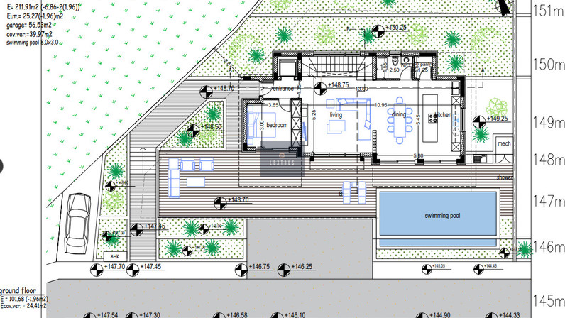 This luxurious 5-bedroom villa in Geroskipou, Paphos represents the perfect blend of modern architecture, energy efficiency, and comfortable family living. Currently under construction, it has been thoughtfully designed to combine open, light-filled interiors with elegant outdoor spaces — ideal for relaxation, entertaining, or year-round living.