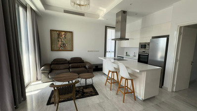 This modern apartment is available for rent in the vibrant Germasogeia Tourist Area. Situated on the 4th floor of a five-story building with an elevator, the property offers a generous internal space of 120 m². The apartment is key ready and fully furnished, featuring three comfortable bedrooms and a spacious bathroom with high-end finishes.