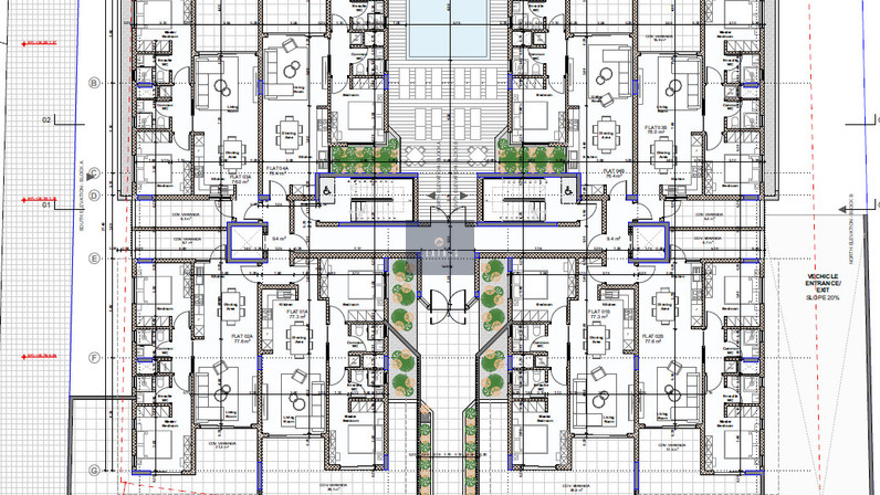 The Project: a luxurious modern design two-buildings, gated resort, comprises of 14 apartments on each block, sharing a pool area, as well as a private green area. Each apartment has its own designated covered parking and a storage room.
