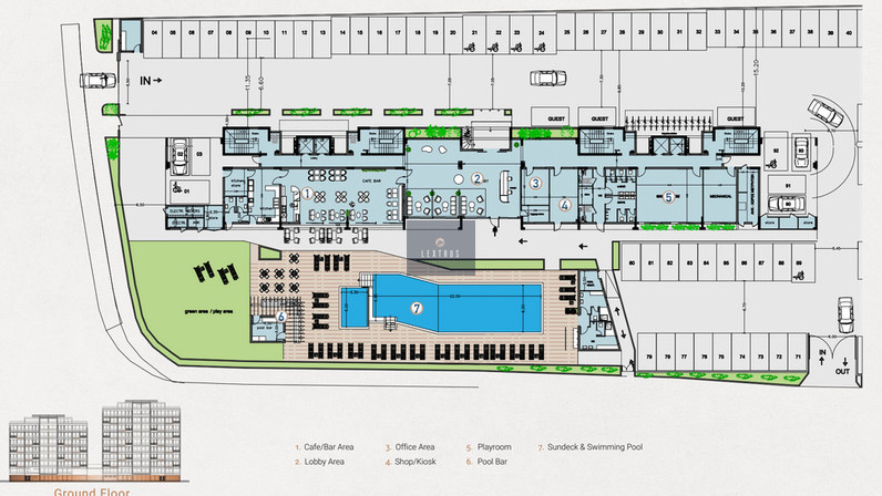 -Common swimming pool with overflow design