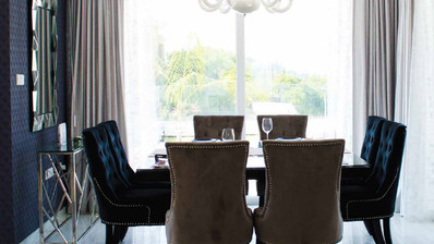 Living Spaces: Expansive open-plan living and dining areas filled with natural light
