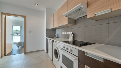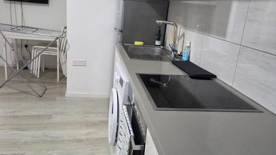 Inside, you'll find a bright living area seamlessly connected to the open-plan kitchen. The bedroom is well-sized with built-in storage. The bathroom features new fixtures, while large windows fill the interior with natural light, creating a warm and inviting atmosphere.
