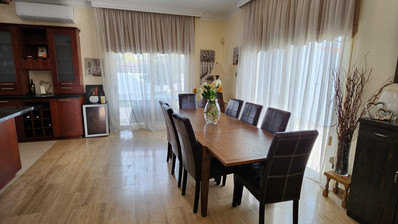 The living areas are bright and inviting, designed with practicality and style in mind. Underfloor heating ensures comfort during the cooler months, and the interior décor complements the villa's generous proportions. Large windows provide natural light and offer views of the surrounding plot, which is both expansive and private.