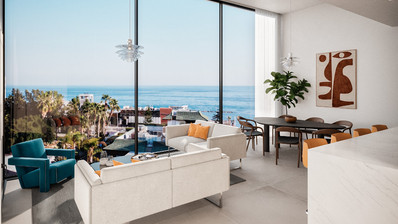 The apartment is thoughtfully designed to combine comfort, elegance, and modern coastal living. It features 2 spacious bedrooms and 2 bathrooms, including a private en-suite. The open-plan layout seamlessly connects the living, dining, and kitchen areas, creating a bright and inviting space enhanced by full-height double-glazed thermal windows that maximize natural light and offer a seamless indoor-outdoor living experience.