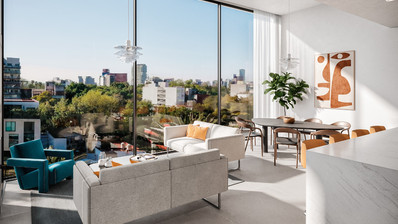 Full-height double-glazed windows for panoramic views and natural light