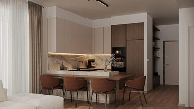 Located on the second floor of a three-story building, the apartment offers both city and country views, creating a relaxing atmosphere throughout the day. Built with quality in mind, the home will be completed in 2027 and includes underfloor heating, ensuring warmth and comfort during cooler months. Large windows and an open layout contribute to a bright and welcoming interior.