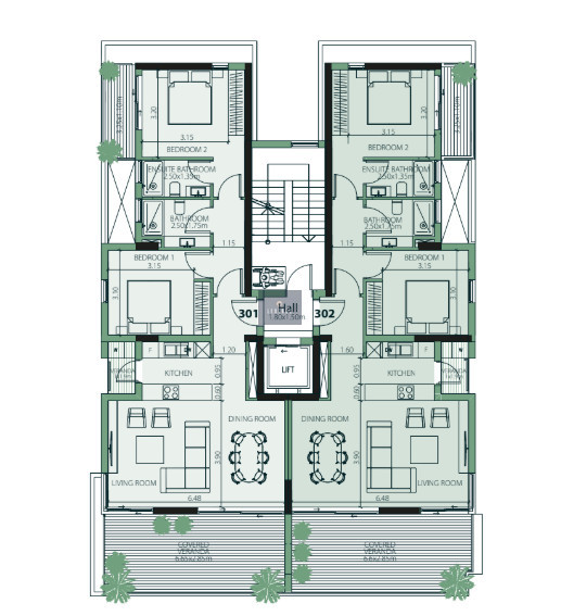 The available 2-bedroom apartment offers a smart and functional layout, combining modern aesthetics with everyday practicality.