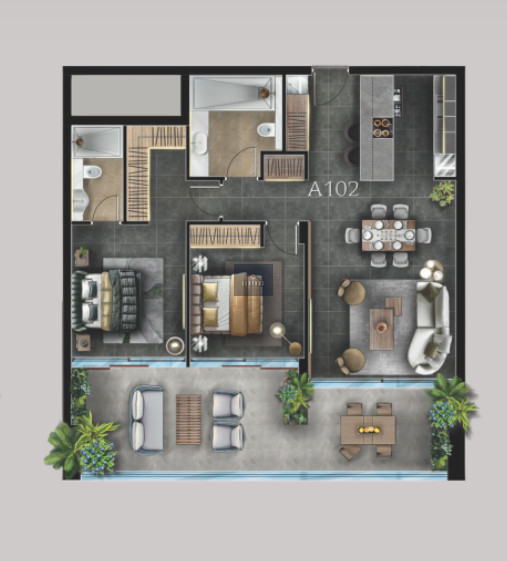 This stylish apartment offers a bright open-plan living and dining area, designed to maximize natural light and functionality, seamlessly connecting to a spacious covered verandaβperfect for relaxing or entertaining.