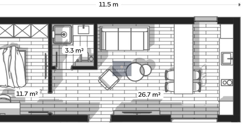 FLOOR AREA: 42.3 M2