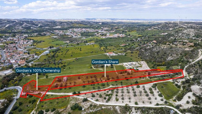 Field with registration number 0/9050 has a land area of 3,011sqm and falls within residential planning zone. Field with registration number 0/9927 is shared (65%) with a total land area of 26,088sqm and Gordian's share corresponds approximately to 16,958sqm. It falls within both agricultural and residential zones.